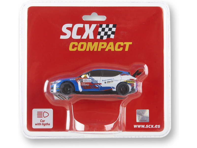 Dráhové autíčko SCX Compact Cupra Leon Competition Bardahl v měřítku 1:43, pro autodráhy SCX Compact. Autíčko je vybaveno LED světly.