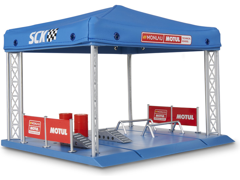 Maketový stan Rally - příslušenství pro autodráhy SCX v měřítku 1:32.