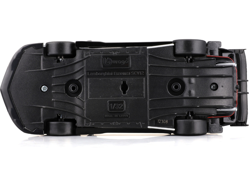Kovový model auta 1:32 Bburago 18-41161 Lamborghini Essenza SCV12 nejen pro sběratele. Model je asi 13 cm velký a má černou a bílou barvu se závodním číslem. Model je v detailním provedení, skvělá úroveň zpracování.