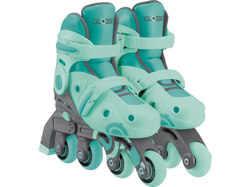 Globber - Dětské kolečkové brusle 2v1, vhodné jako první brusle na učení, díky možnosti jednoduchého otočení zadních koleček, které můžou být vedle sebe pro vyšší stabilitu. Nastavitelné délka boty EU 26-29. Kolečka z PU o48mm (šířka 24mm). Kvalitní ložiska ABEC 5. Zadní TPR brzda. Přezkové zapínaní.