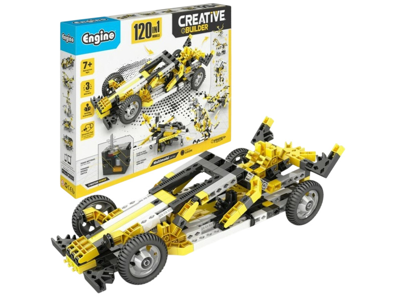 Engino Creative Builder 120 modelů + motor, je největší sadou Engino této řady. Obsahuje elektromotor pro rozpohybování modelů. Z dílů lze sestavit až 120 modelů různých témat pohybujících se letadel, motocyklů, aut, stavebních strojů a dokonce i roztomilých zvířat. Doporučeno pro věk 7+.