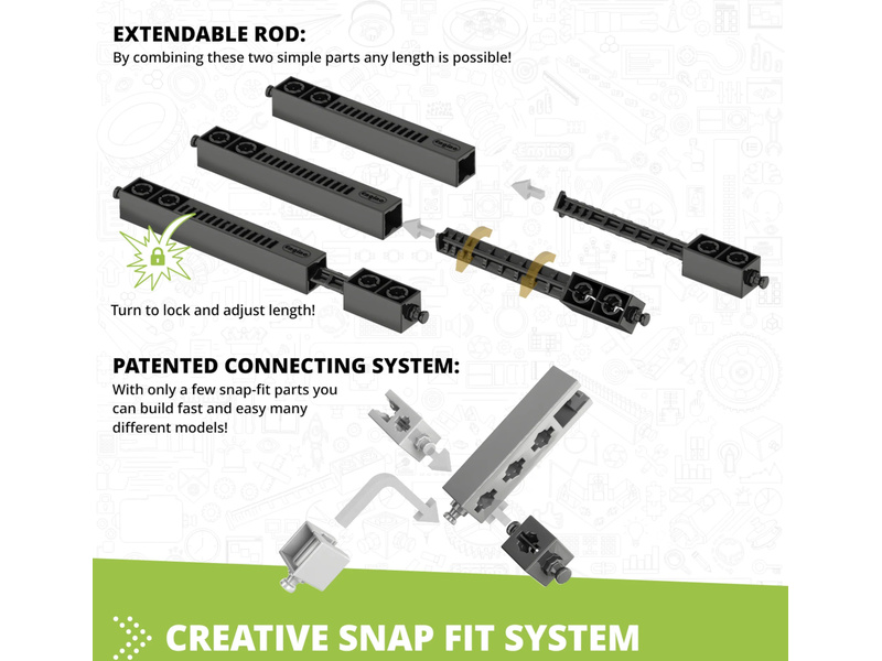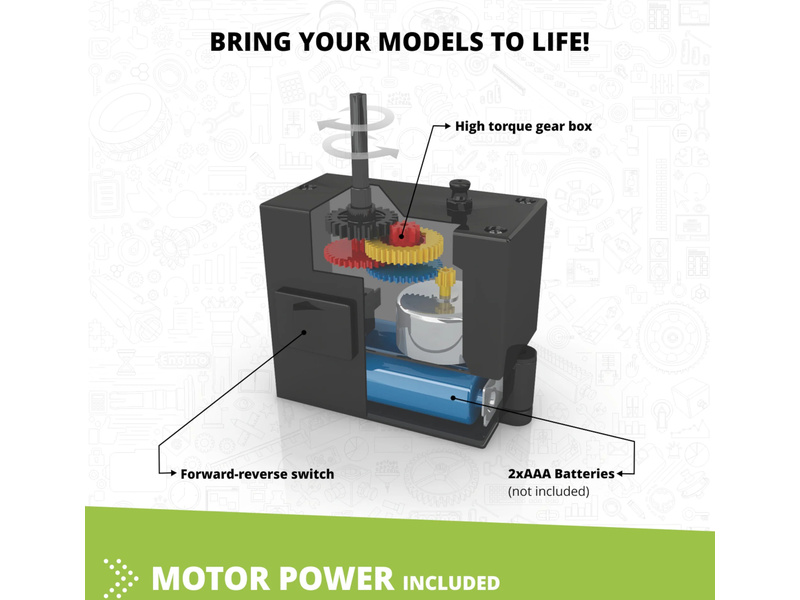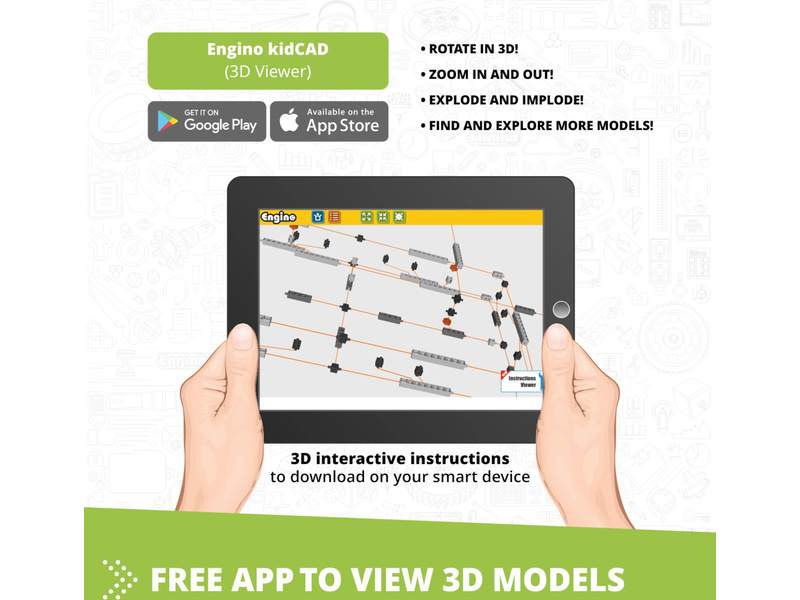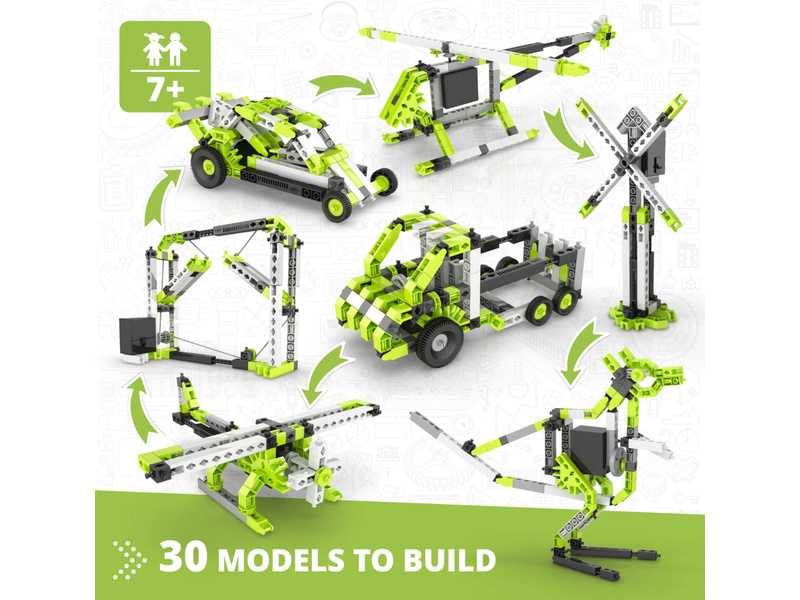 Engino Inventor 30 modelů je stavebnice s možností sestavení více modelů. Obsahuje elektromotor, který vaše modely rozpohybuje. Je možné sestavit úžasná vozidla jako Buggy pro drsné cesty, tříkolky, skútr.. Věk 6+. Set obsahuje tištěný návod na 4 modely, návody na všech 30 modelů ENGINO jsou zdarma dostupné na stránkách výrobce. Návody a 3D instrukce si můžete prohlížet v PC, tabletu nebo chytrém telefonu.