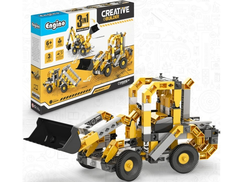 Engino Creative Builder nakladač 3v1 je stavebnice, která rozvíjí kreativitu dětí. Mladí milovníci stavebních strojů si s touto praktickou výukovou stavebnicí postaví svá oblíbená vozidla - jako je rypadlo, nakladač a sklápěč. Věk 6+.