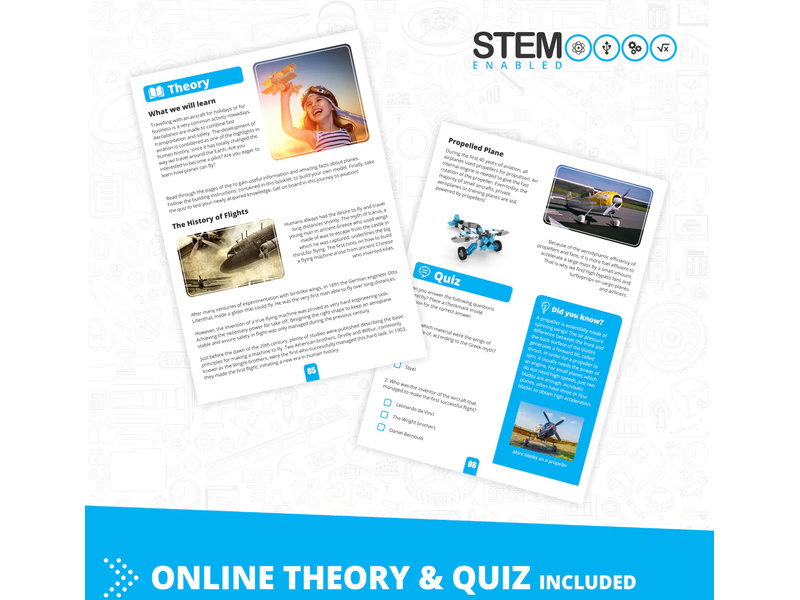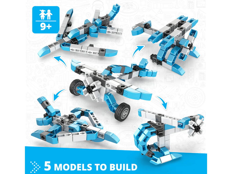 Stavebnice pro děti od 9 let, Engino Inventor Mechanics akrobatické letadlo, sestavit lze 5 různých modelů letadel a vrtulníků. Jednoduchá kreativní stavebnice pro děti, s možností využít stávající díly k dalším stavebnicím Engino. Obrázkový přehledný barevný návod.