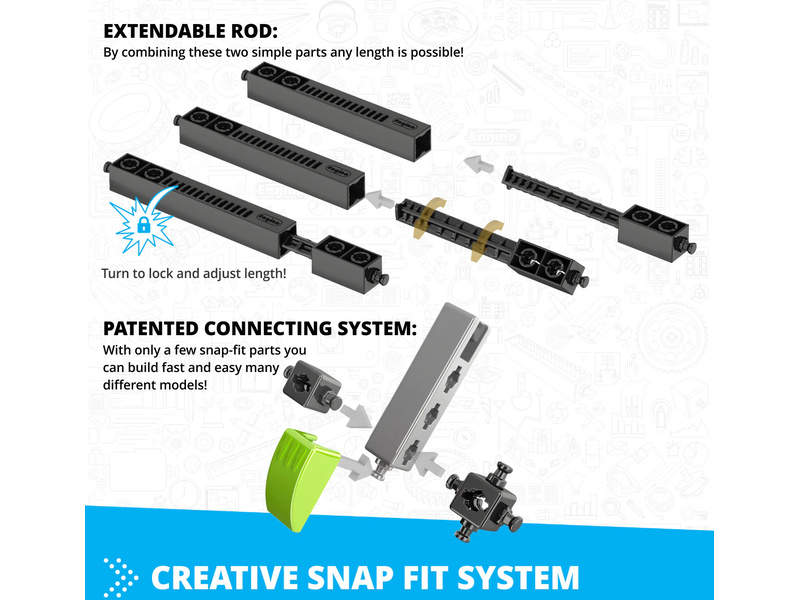 Série INVENTOR MECHANICS má tematický přístup s možností více modelů a představuje působivý hlavní model. K systému ENGINO® patří patentované komponenty, které zvyšují estetické i technické vlastnosti. Mezi tyto části patří vysoce precizní kolečka, různé mechanismy a montované zakřivené povrchy. Stačí pochopit systém sestavování a můžete vytvářet vlastní stavební kreace.