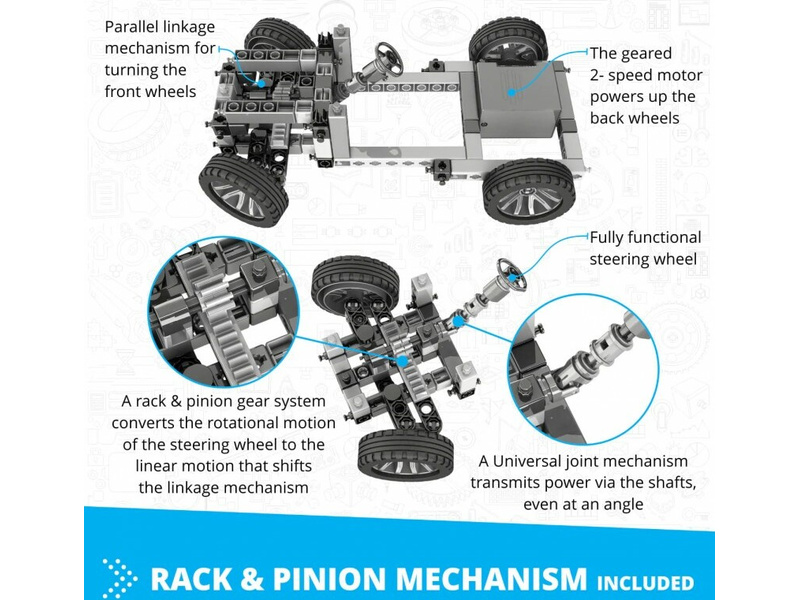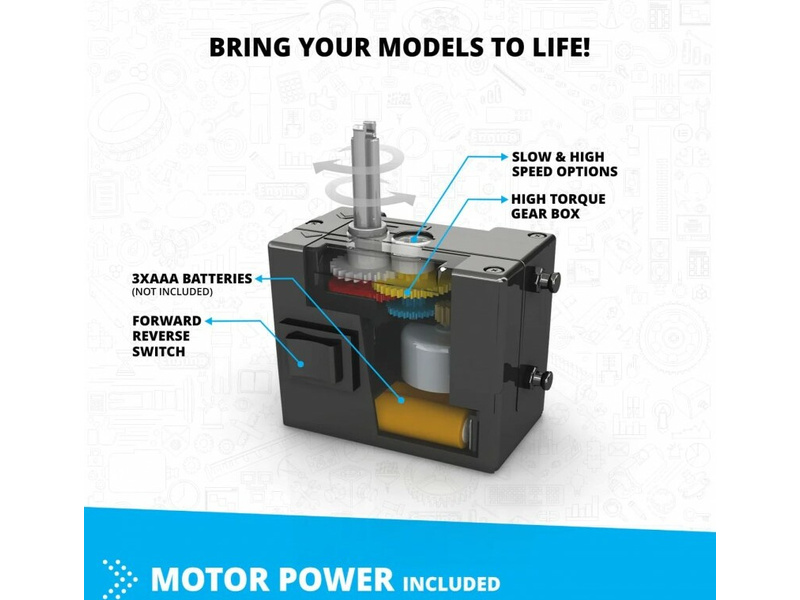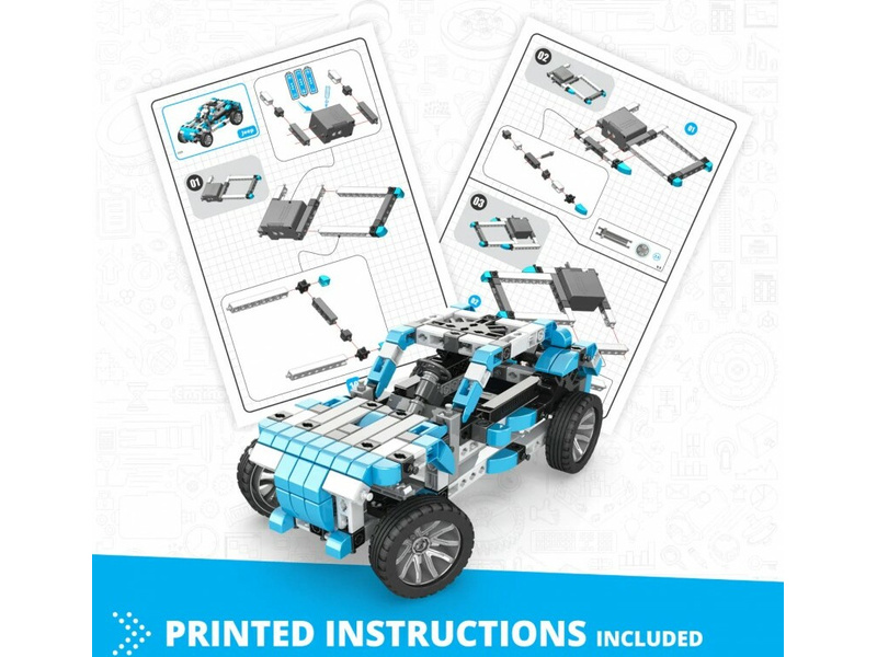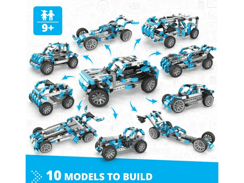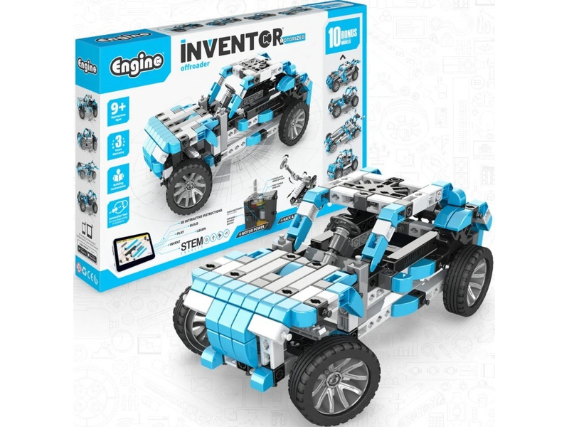 Stavebnice Engino Inventor Motorized offroad, sestavit lze 10 různých modelů, jako jsou auta terénní, závodní, rychlostní a další. Aby se modely pohybovaly, je součástí i pohonná jednotka na baterie s motorem a vypínačem. Návody s přesným postupen sestavení a popisem funkcí mechanismů. Pro děti od 9 let.