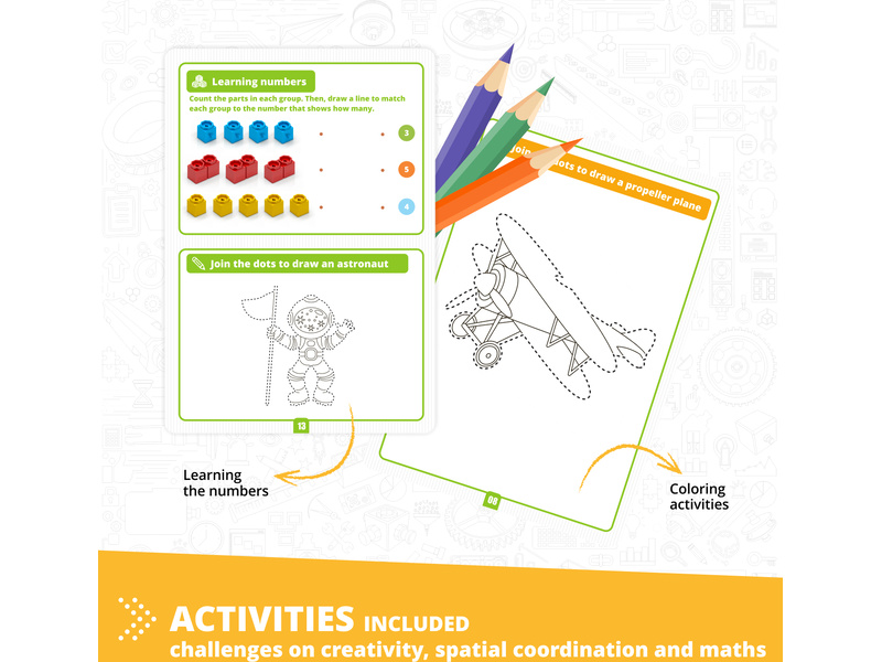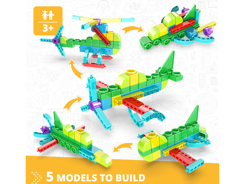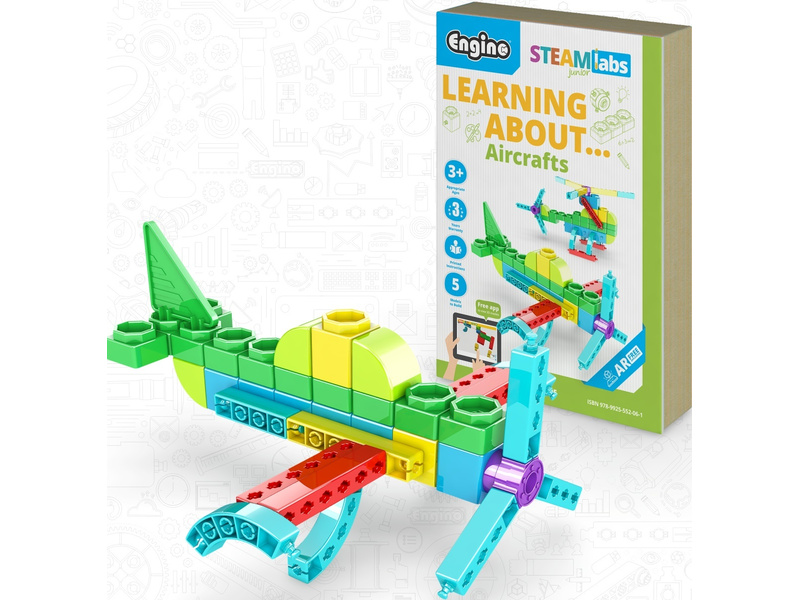 Tato kombinace hraček a knížky, která obsahuje základní koncepty STEAM, představuje dětem letadla. Prostřednictvím poutavých aktivit a podrobných instrukcí mohou děti pod vedením dohlížejícího dospělého postavit modely letadel. Každé téma poskytuje vzrušující fakta a zároveň rozvíjet dovednosti STEAM 21. století..
