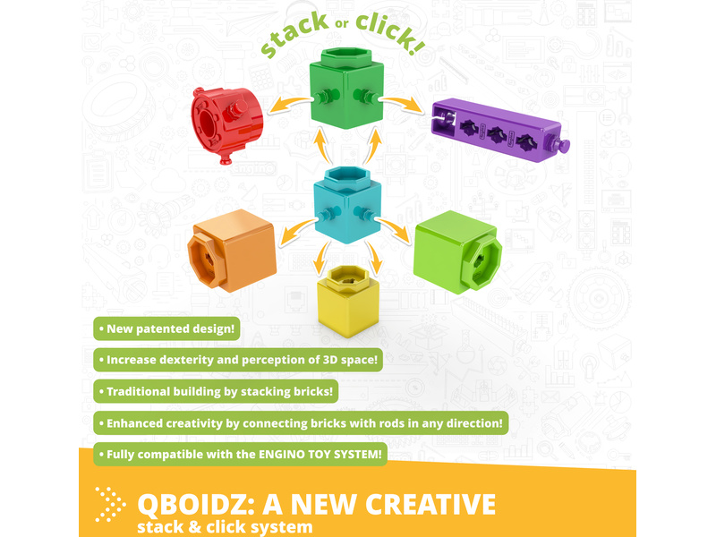 Kostyk Engino se dělí do 4 subsystému podle věku. Baby Qboidz zaměřené na bezpečnost a rozvoj motorických schopností od 1.5 roku. Qboidz od 3 let přidává některé speciální spojovací prvky a zaměřuje se na kognitivní rozvoj. Engino Classic což jsou originální původní kostky pro děti od 6 let, umožňující komplexní stavbu ve více osách. Engino Mechanics od 9 let s technickými díly jako jsou převody a ozubená kola.