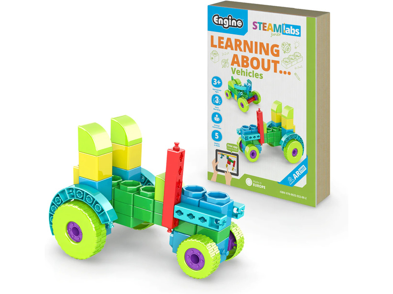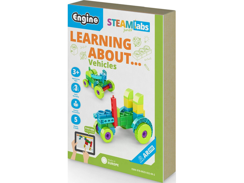 Stavebnice Engino Učíme se o vozidlech, je příběhové dobrodružství, ve kterém malí žáci objevují úžasná fakta o svých oblíbených silničních a terénních vozidlech a zároveň rozvíjejí klíčové dovednosti STEAM (věda, technika, inženýrství, umění a matematika), jako je koordinace ruka-oko, prostorové myšlení a tvořivost .