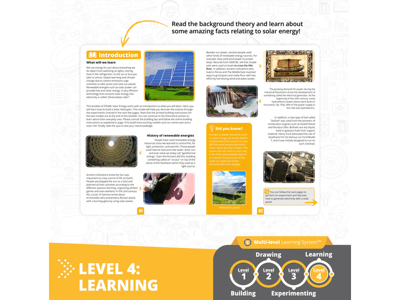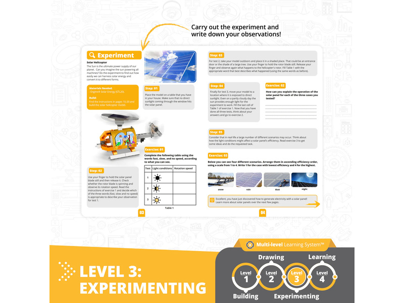Představujeme vám podmanivou knihu hraček STEM LABS - Engino Jak funguje solární energie?, poutavým způsobem odhaluje teorii sluneční energie. Tato inovativní série spojuje vědu, technologii, inženýrství, umění a matematiku a podporuje mladé vědce prostřednictvím poutavého průzkumu.