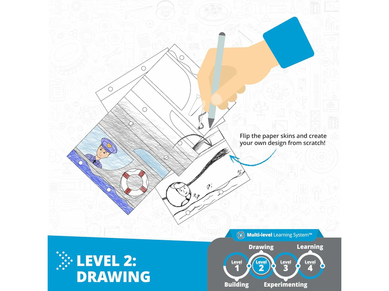 Série hraček STEAM LABS™ zaujme ještě více tím, že hračku spojí s knížkou Teorie a aktivity na vnější straně krabice, která je zabalena ve smršťovací fólii. Každá sada obsahuje listy papíru s předdefinovanými náčrty, které mohou děti malovat, stříhat a připevnit na své modely. Knihy vysvětlují teorii k tomuto tématu a obsahují inteligentní experimentální aktivity, které souvisí s každým tématem. Tyto knihy jsou dodávány s bezplatnou aplikací Augmented Reality (AR), díky které je obsah mnohem poutavější a zábavnější!
