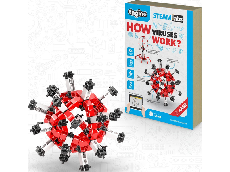 Vydejte se na cestu do biologie s interaktivní stavebnicí pro děti - STEAM LABS Jak fungují viry? od výrobce Engino. Tato podmanivá stavebnice zasvěcuje děti do světa virů prostřednictvím praktických experimentů a projektů. Od vytváření modelů virů až po pochopení jejich struktury. Každý projekt zlepšuje vědecké bádání a schopnosti kritického myšlení. Vybavte své dítě hlubším pochopením biologie prostřednictvím této vzdělávací a poutavé sady.