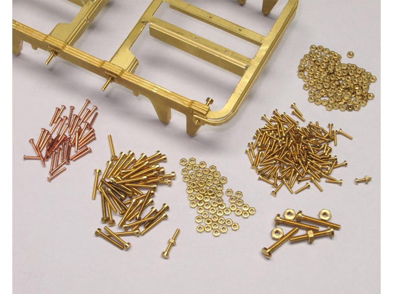 Sada obsahuje díly rámu a podvozku z leptané mosazi a mosazné spojovací součásti a čepy. Obtisky a lepící pásku s imitací původního povrchu z ořechu, tapet a čalounění. Dřevěné díly jsou z březové překližky, obsáhlý návod ke stavbě.