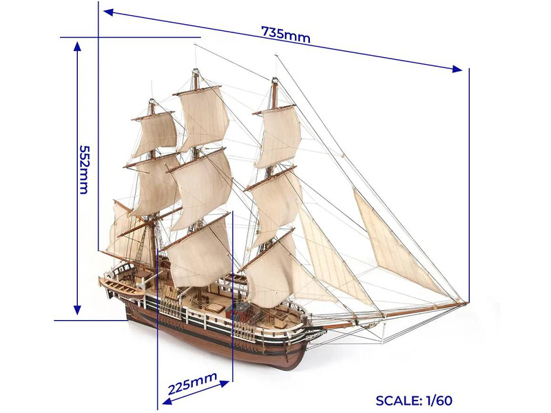Stavebnice neplovoucího modelu lodi OCCRE Essex, v měřítku 1:60. V balení jsou díly pro stavbu + plachty - laserem řezané díly, lišty, mosazné fotolepy, lanoví a další. Stavební výkresy a návod.