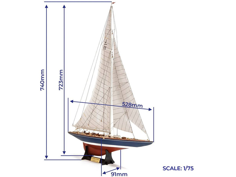 Stavebnice neplovoucího modelu lodi OCCRE Endeavour jachta – Americas Cup 1934, v měřítku 1:75. V balení jsou díly pro stavbu + plachty - laserem řezané díly, lišty, mosazné fotolepy, lanoví a další. Stavební výkresy a návod.