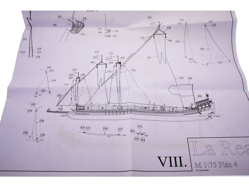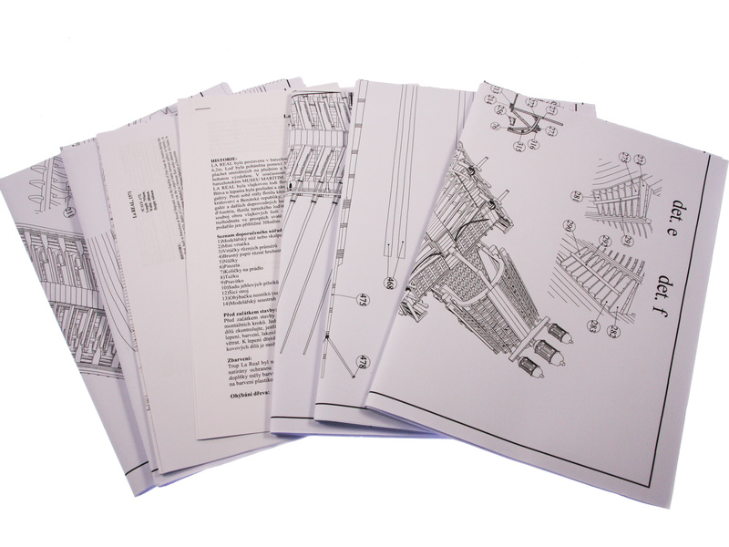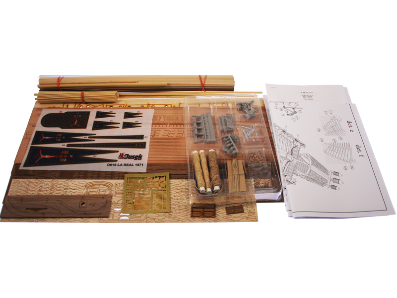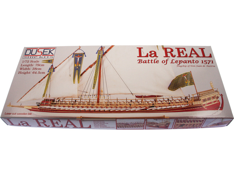Stavebnice makety lodi La Real Galeere z roku 1571 v měřítku 1:72. Délka modelu lodi je 795mm, stavba převážně ze dřeva s drobnými doplňky, součástí je stavební plán a pokyny s mnoha podrobnými obrázky.