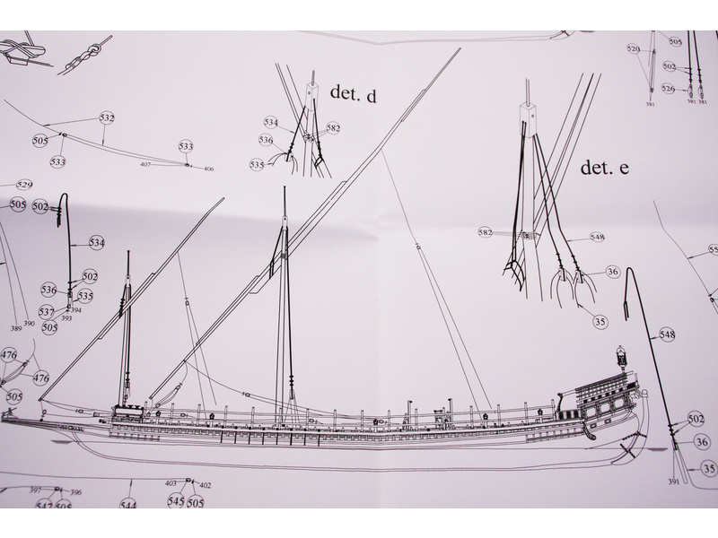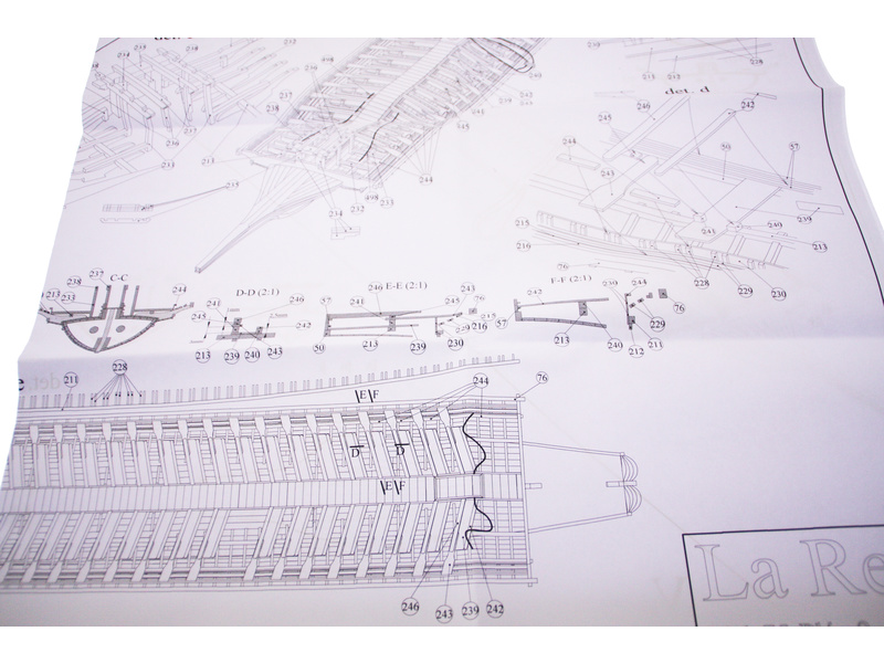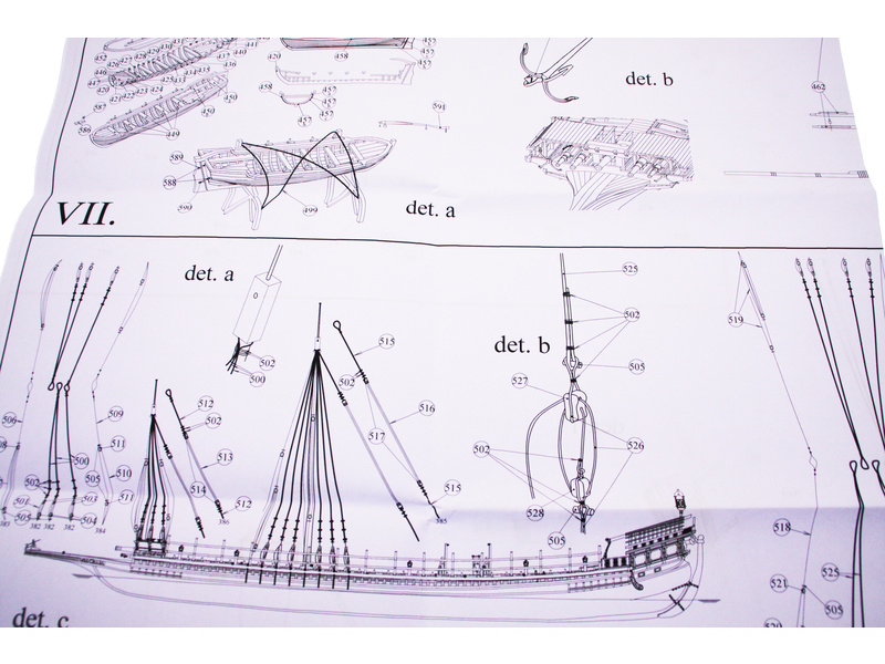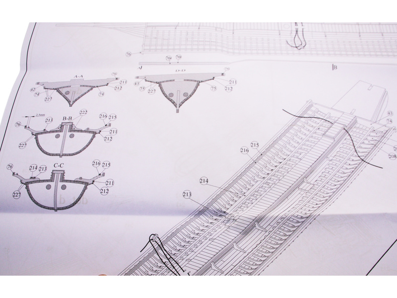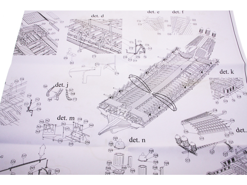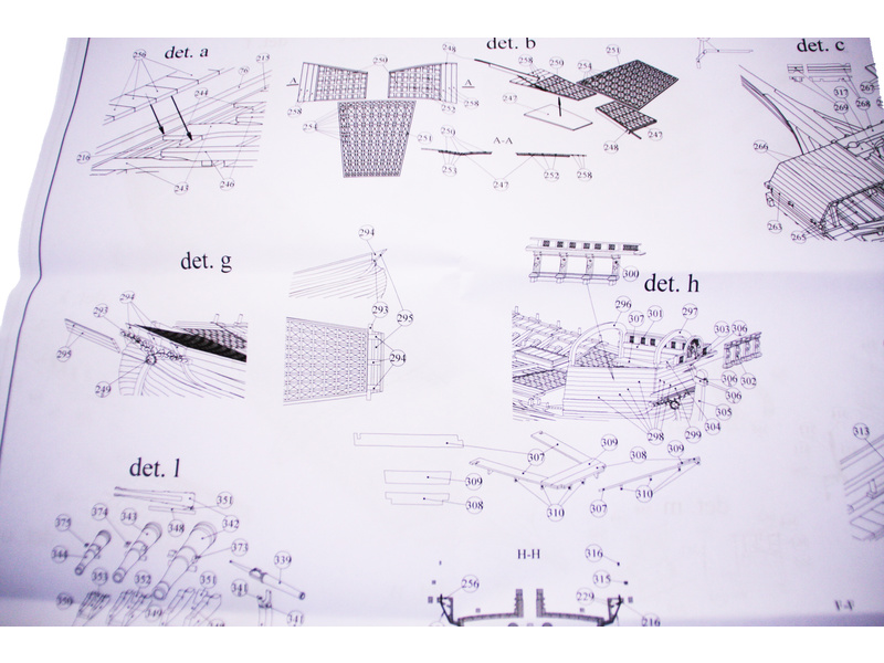 V balení stavebnice makety je sestava laserem vyřezaných desek z překližky a kompletní dřevěné součásti, mosazné součásti, prkna a lišty pro palubu, předtištěné vlajky, látku pro plachtu a dostatek lanoví na celou loď. Sestavení pomáhá podrobný plán stavby a přesné pokyny, manuál EN, FR, SP, CZ.