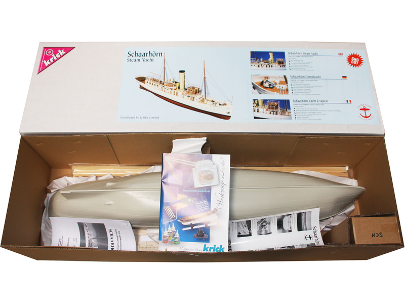 Stavebnice modelu lodi CALDERCRAFT Schaarhörn z roku 1908 v měřítku 1:35. Při výrobě této skvostné makety máte k dispozici spoustu součástí, které přesně odpovídají detailům skutečné lodi. Jemně detailní laminátový trup s pečlivě nýtovaným povrchem, okenní rámy, ozdoby a kování pro co nejvěrnější přiblížení originálu.