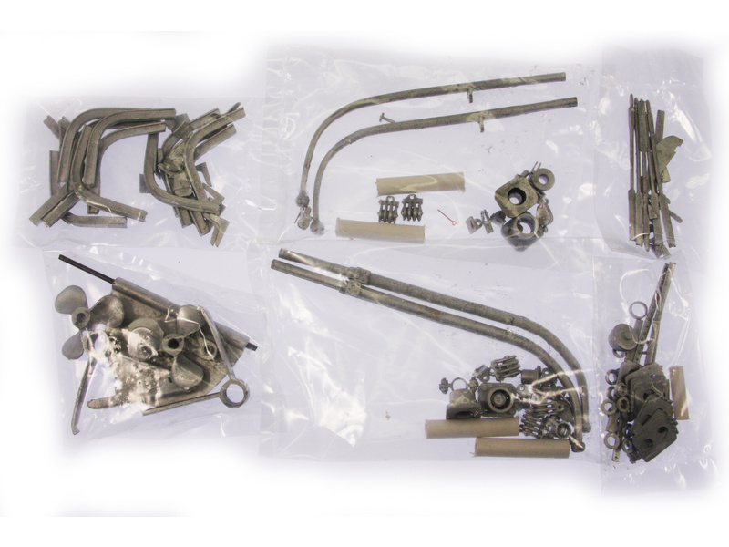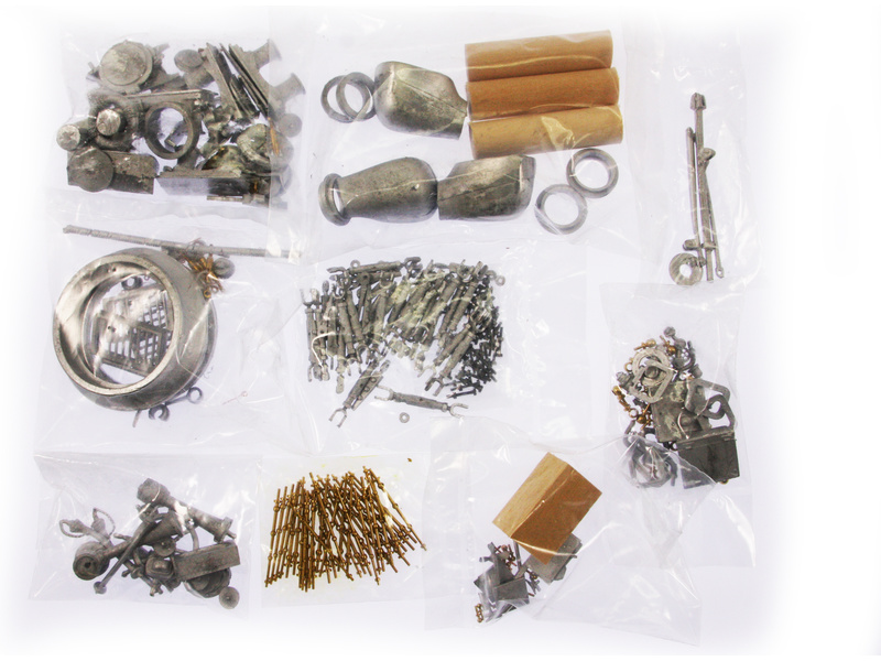 Po otevření víka krabice naleznete laminátový trup, dřevěné díly modelu z překližky, sadu lišt, kovové odlitky, drobné součásti, sadu výkresů a manuál.