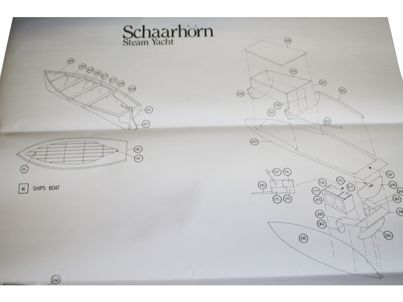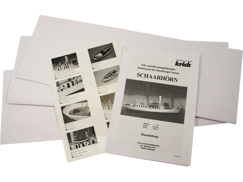 Obsahem balení je stavebnice lodi CALDERCRAFT Schaarhörn 1908 1:3 v měřítku 1:35. V balení je pevný laminátový trup, laserem vyřezané díly z překližky, sada lišt, plastové výlisky trupů člunů, mosazné lepty, 2 kompletní hřídele, kovové odlitky, drobné příslušenství, plány 1:1, manuál.