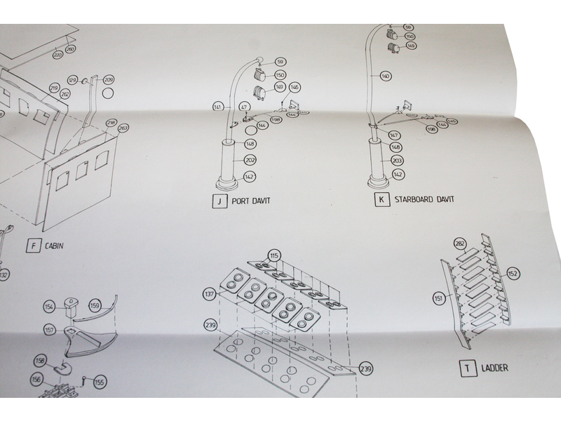 Set obsahuje kompletní sadu výkresové dokumentace modelu v měřítku 1:1 s obrázky jednotlivých detailů. Na výkrese jsou v měřítku nakresleny montážní sestavy a jejich kompletace. Vícejazyčný postup stavby rámcově upravuje logické sestavení jednotlivých komponentů.
