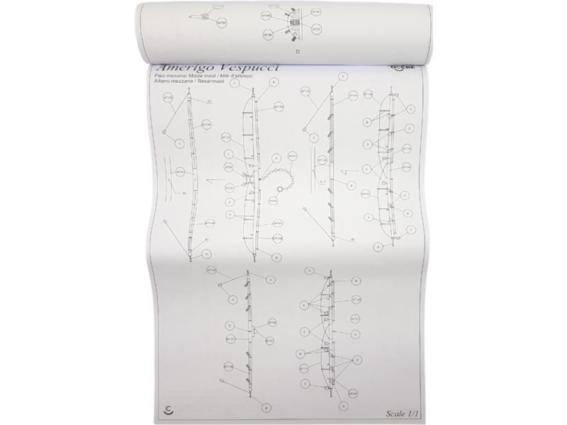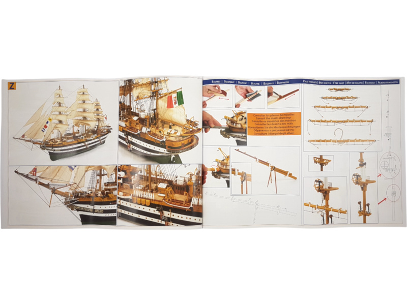 Set obsahuje kompletní sadu výkresové dokumentace modelu v měřítku s obrázky jednotlivých detailů. Na výkrese jsou v měřítku nakresleny montážní sestavy, jejich kompletace a to včetně stěžňů a ráhen a způsob vázání lanoví. Vícejazyčný postup stavby rámcově upravuje logické sestavení jednotlivých komponentů.