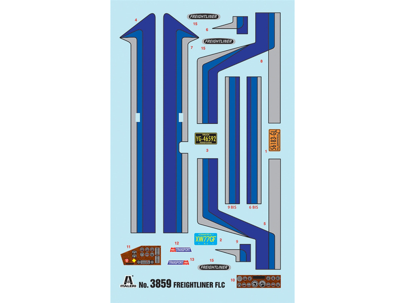 Plastikový model Italeri 3859 – truck Freightliner FLC v měřítku 1:24 ke slepení. Délka modelu 325 mm, obtížnost 4. Balení obsahuje SUPER OBTISKY.