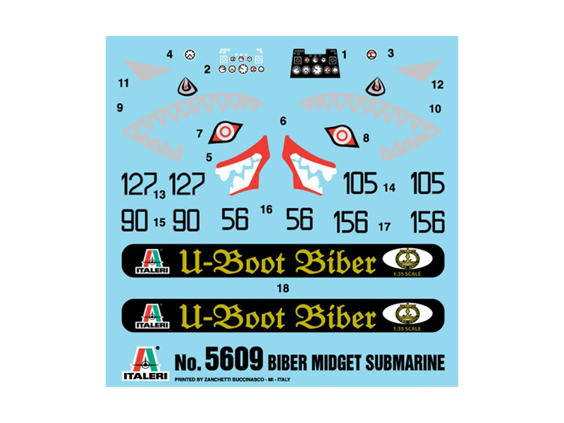 Italeri plastikový model německé ponorky v měřítku 1:35 ke slepení. Délka 186 mm, stavební obtížnost 3, obtisky pro 3 verze.