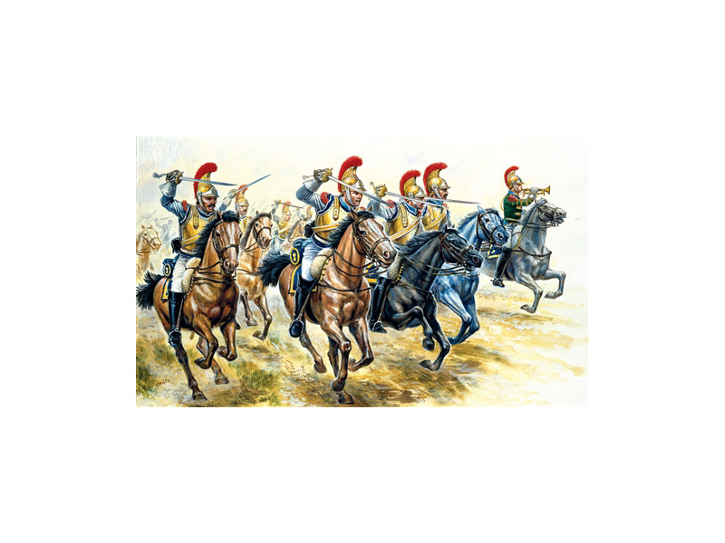 Sada doplňující plastikové modely Italeri 6003 - figurky FRENCH HEAVY CAVALRY (NAP. WARS) v měřítku 1:72. Balení obsahuje figurek a koní. Obtížnost 1.