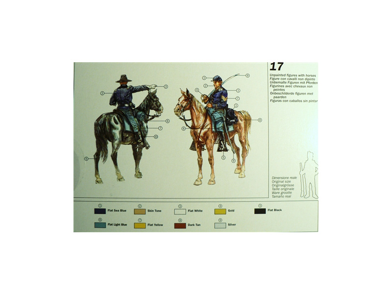 Sada doplňující plastikové modely Italeri 6013 - figurky UNION CAVALRY (AMERICAN CIVIL WAR) v měřítku 1:72. Balení obsahuje 17 figurek na koních. Obtížnost 1.