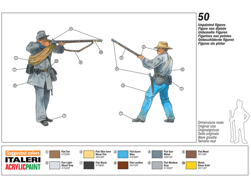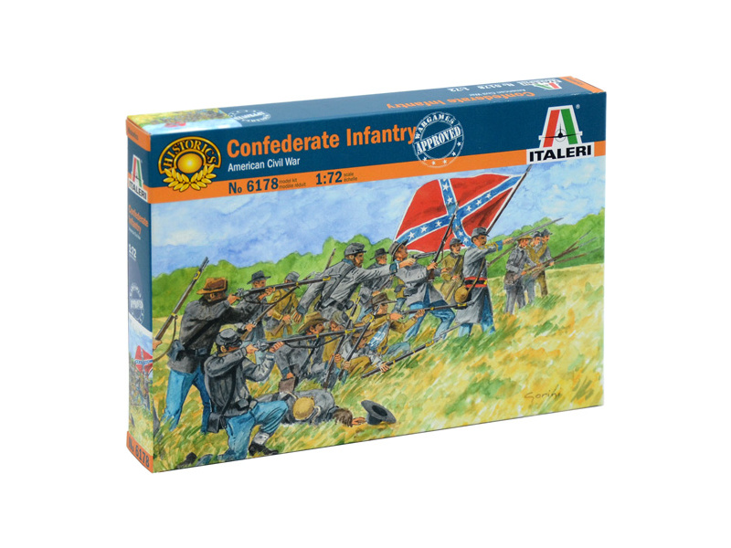 Plastikové figurky Italeri 6178 - konfederační pěchoty v měřítku 1:72. Ideální pro doplnění plastikových modelů či diorámat.