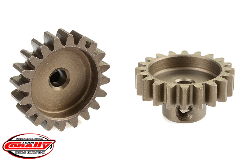 Krátké provedení, materiál tvrzená ocel, 20 zubů, modul ozubení 32DP. Pro hřídel motoru o průměru 3.17 mm (1/8 in). Pastorky TEAM CORALLY jsou vyráběny frézováním a následně tvrzeny, čímž je zajištěna vysoká přesnost ozubení. Všechny pastorky TEAM CORALLY jsou vyrobeny v EU.