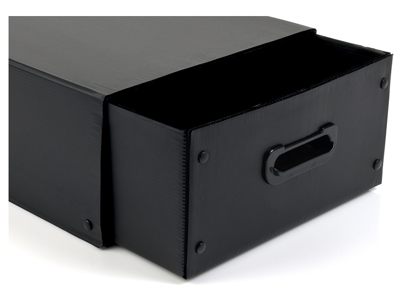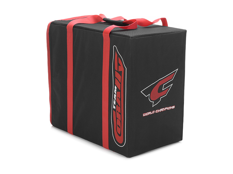 Přepravní taška se dvěma šuplíky pro přepravu příslušenství k RC autům nebo jeho příslušenství. Rozměr šuplíku 30 x 48 x 15 cm, rozměr tašky je 54 x 51 x 33 cm. Šuplíky jsou vyrobeny z plastového kartonu. Úchyty šuplíků jsou vyrobeny z plastového výlisku. Každý šuplík je vsazen do kartónového obalu, čímž je zamezeno jeho vysypání.