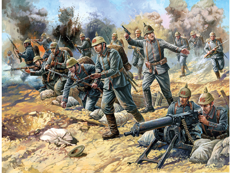 Sada figurek Zvezda 8083 německé pěchoty první světové války doplňujících modely. Velikost figurek je 1:72. Balení obsahuje 42 dílků. Ideální pro doplnění plastikových modelů či diorámat.