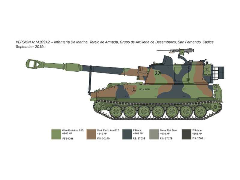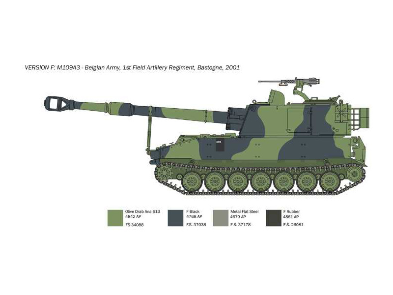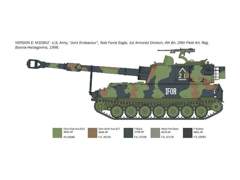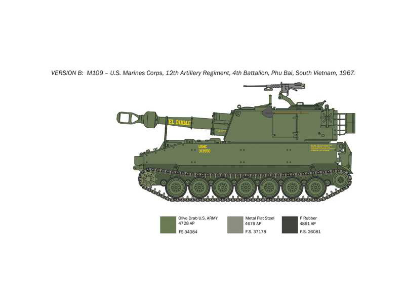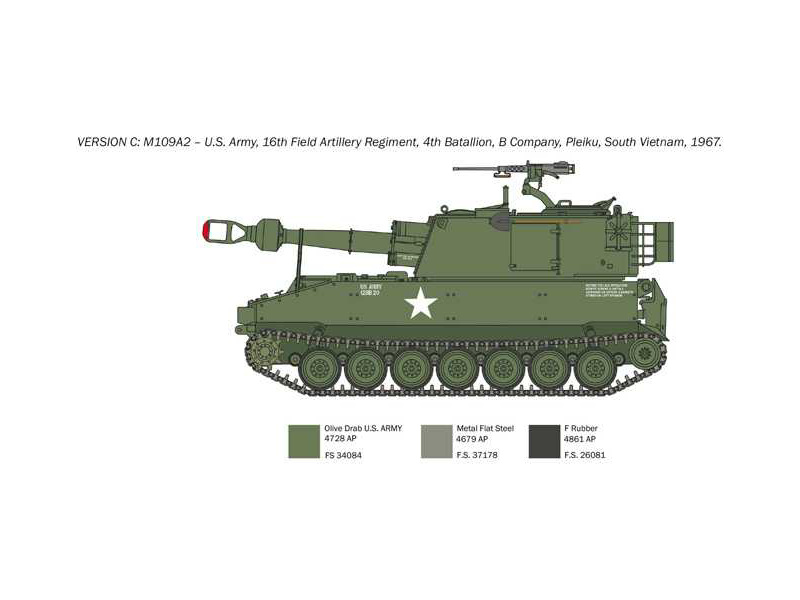Plastikový model Italeri 6589 – samohybné dělo M109/A2-A3-G v měřítku 1:35 ke slepení. Délka modelu 189 mm, obtížnost 3. Balení obsahuje SKVĚLÉ OBTISKY PRO 6 VERZÍ.