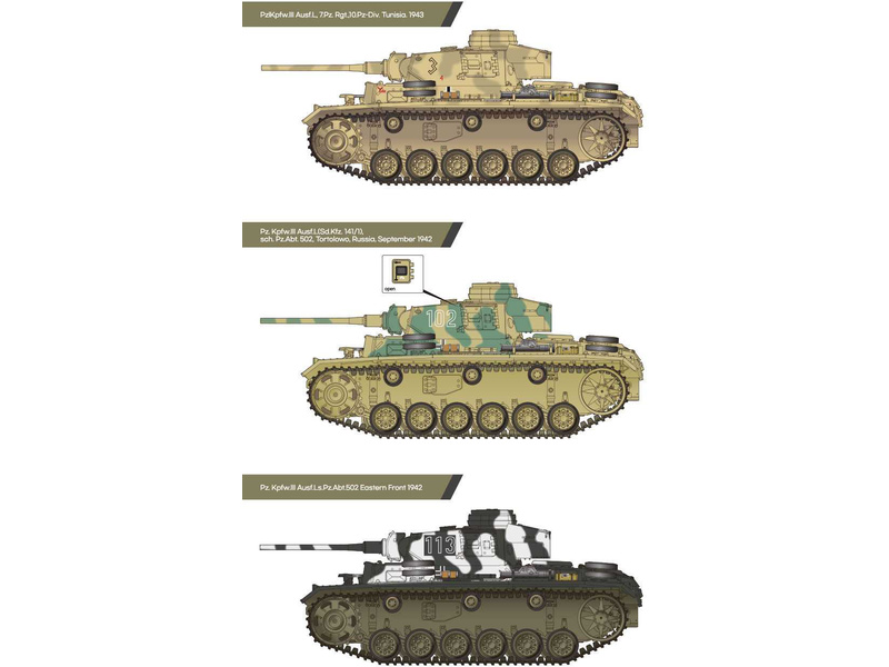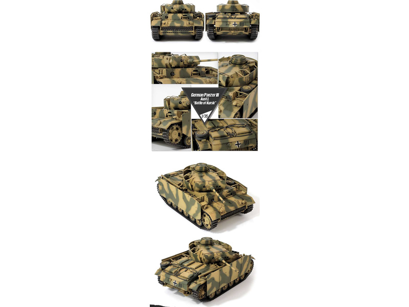 Plastikový model Academy 13545 - tank Panzer III Ausf.L "Battle of Kursk" v měřítku 1:35 ke slepení. Délka 175 mm, obtížnost 4.