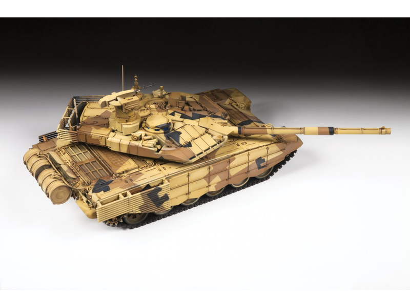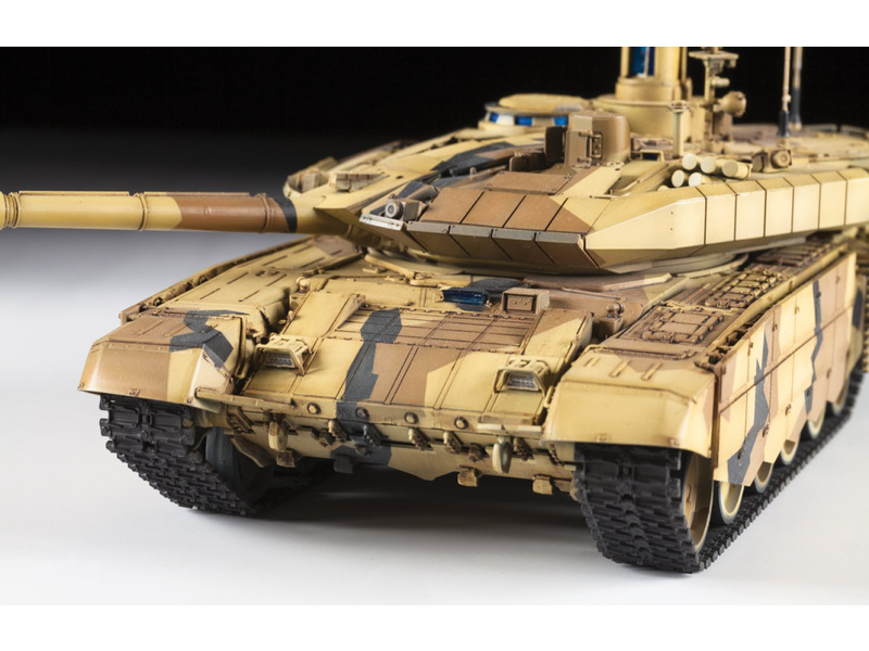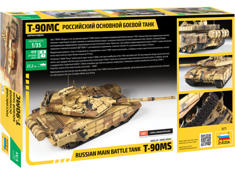 Plastikový model Zvezda 3675 - ruský hlavní bitevní tank T-90MS v měřítku 1:35 ke slepení. Stavebnice obsahuje 459 dílků, délka 270 mm, obtížnost 5.
