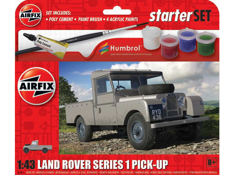 Stavebnice plastikového modelu, Airfix A55012 - auto Land Rover Series 1 v měřítku 1:43 ke složení. Stavebnice obsahuje 39 dílků, délka 83 mm, obtížnost 1.