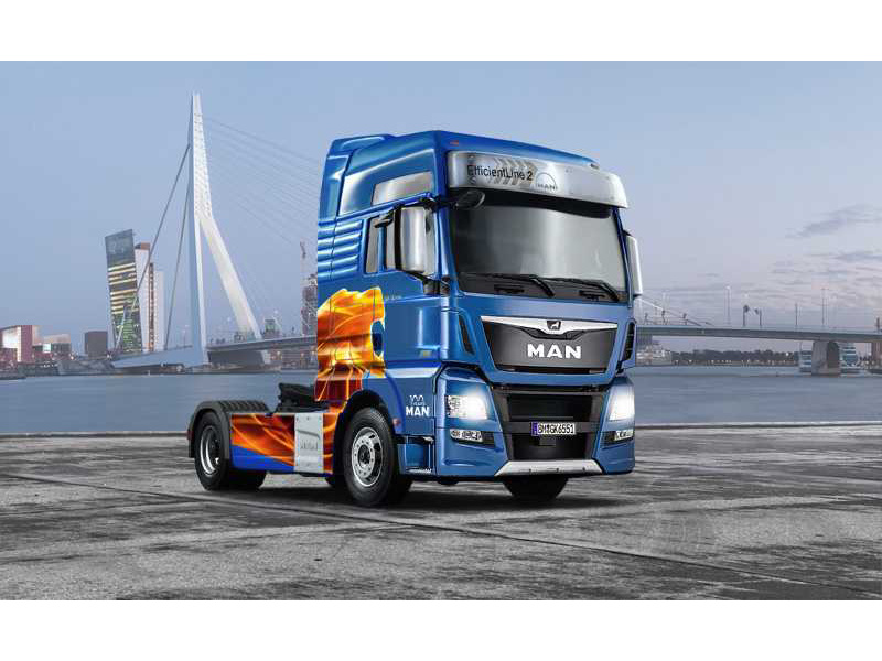 Italeri plastikový tahače MAN TGX XXL D38 v měřítku 1:24 ke slepení. Délka modelu 257 mm, obtížnost 4. Balení obsahuje super obtisky.