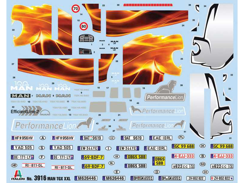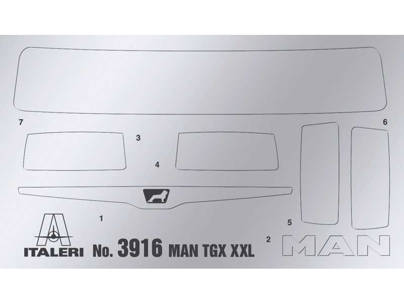 Plastikový model Italeri 3916 - truck MAN TGX XXL D38 v měřítku 1:24 ke slepení. Délka modelu 257 mm, obtížnost 4. Balení obsahuje super obtisky.