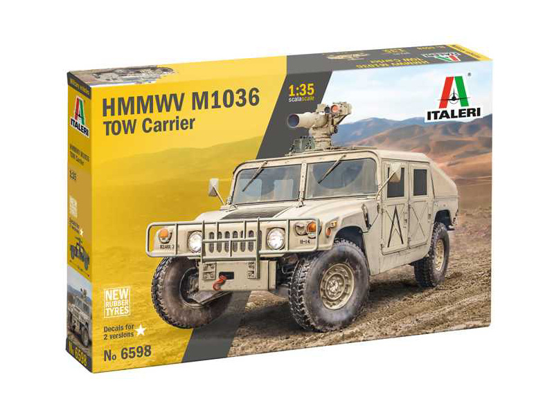 Plastikový model Italeri 6598 - military Humvee HMMWV M966 TOW Carrier v měřítku 1:35 ke slepení. Délka modelu 131 mm. Balení obsahuje SKVĚLÉ OBTISKY PRO 2 VERZE.