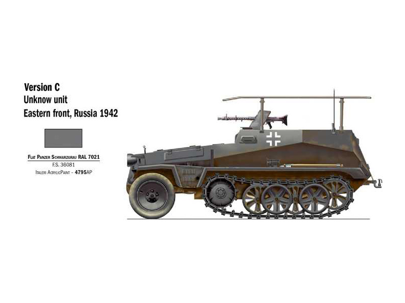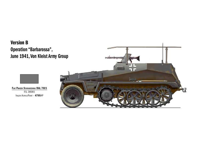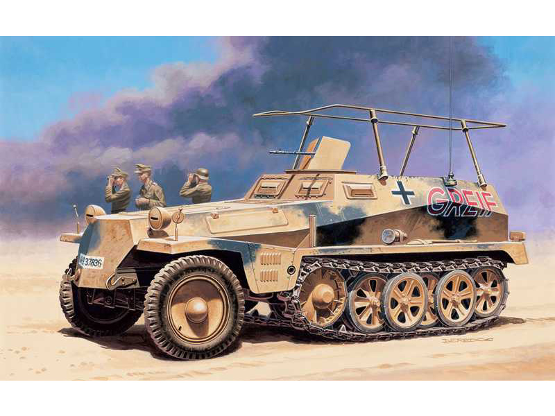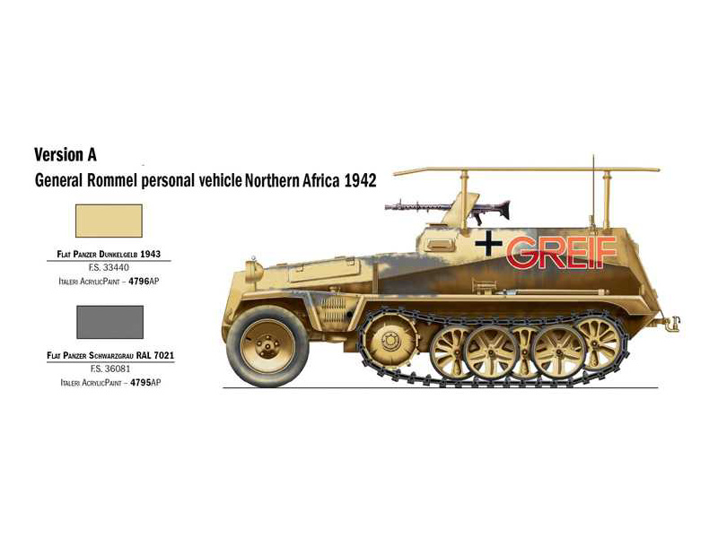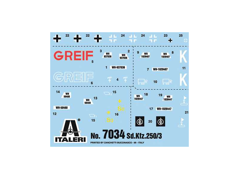 Plastikový model Italeri 7034 - military Sd. Kfz. 250/3 v měřítku 1:72 ke slepení. Délka modelu 63 mm, obtížnost 1. Balení obsahuje SKVĚLÉ OBTISKY PRO 4 VERZE.