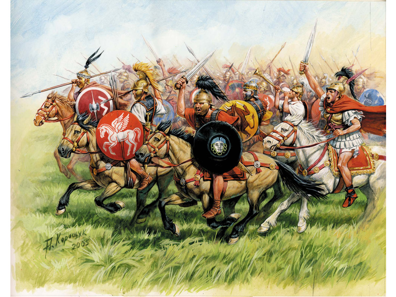 Plastikový model Zvezda 8038 - figurky republikánské Řím. kavalerie v měřítku 1:72. Stavebnice obsahuje 18 dílků, výška figurky 24 mm. Ideální pro doplnění plastikových modelů či diorámat.