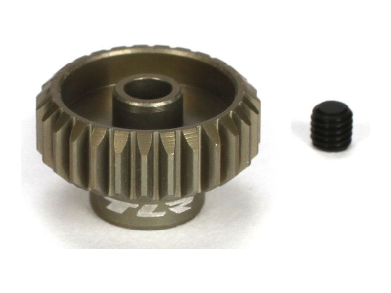TLR pastorek na hřídel 3.17 mm (1/8") s 27 zuby a modulem ozubení 48DP pro RC modely aut. Vyrobeno z hliníkové slitiny. Součástí balení je červík.