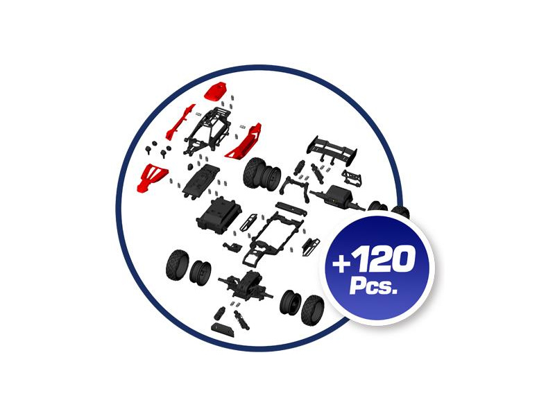 Balení obsahuje více než 120 dílů pro sestavení auta na dálkové ovládání. Jednotlivé díly jsou navrženy tak, aby stavba nebyla náročná a není k ní potřeba nářadí. Elektronika je pro zjednodušení rozdělena do jednotlivých modulů, které jsou již zkompletovány a stačí je pouze propojit.
