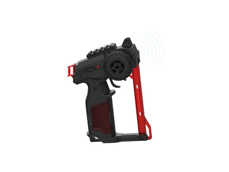 Volantový vysílač pracuje na frekvenci 2,4GHz. Díky tomu nedochází k žádnému rušení. Má integrovanou anténu, která se už nikdy neulomí. Neutrální polohu kol lze nastavit trimem ve spodní části auta.