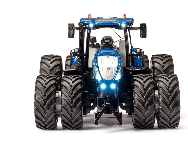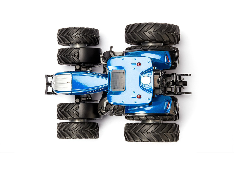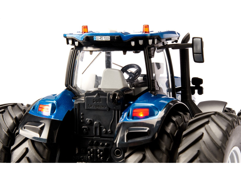 Model traktoru New Holland T7.315 vás naprosto nadchne a to nejen robustním autentickým zpracováním z kovu s plastovými částmi, ale také dálkově řízenými funkcemi, které lze ovládat pomocí aplikace Siku Control v telefonu. Kromě tří mechanických funkcí lze také dálkově zapínat světla, aktivovat blinkry a spustit majáčky. Model dále obsahuje přední držák, sklopná zrcátka a dvojitá kola s pneumatikami (vnější kola jsou připevněny pomocí jedinečného magnetického ráfku a lze je demontovat). Model může být rovněž vybaven dalším příslušenství z řady Siku 1:32. Provoz modelu je na tužkové baterie.