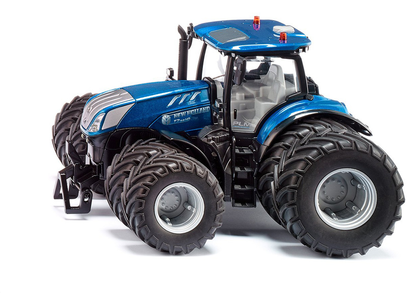 Model traktoru New Holland T7.315 vás naprosto nadchne a to nejen robustním autentickým zpracováním z kovu s plastovými částmi, ale také dálkově řízenými funkcemi, které lze ovládat přes přiložený vysílač nebo pomocí aplikace Siku Control v telefonu. Kromě tří mechanických funkcí lze také dálkově zapínat světla, aktivovat blinkry a spustit majáčky. Model dále obsahuje přední držák, sklopná zrcátka a dvojitá kola s pneumatikami (vnější kola jsou připevněny pomocí jedinečného magnetického ráfku a lze je demontovat). Model může být rovněž vybaven dalším příslušenství z řady Siku 1:32. Provoz modelu je na tužkové baterie.