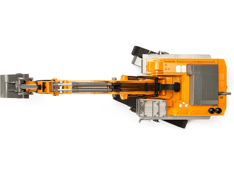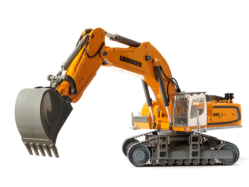 Kovový model pásového rypadla Liebherr R980 SME na dálkové ovládání přes telefon v měřítku 1:32. Šest dálkově řízený funkcí - jízda, zatáčení, otáčení kabiny, dva klouly ramene a výklopná lžíce. 8 LED diod, zvuky v aplikaci. Vhodné pro hraní i sběratelství. Kvalitní autentické zpracování z kovu a plastu.