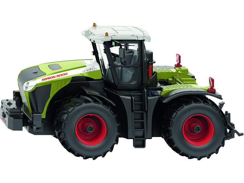 Kovový model traktoru Claas Xerion 5000 TRAC na dálkové ovládání přes telefon v měřítku 1:32. Šest dálkově řízených funkcí - jízda, zatáčení, krabí jízda, zrcadlové zatáčení náprav, otočná kabina, aretace tažného zařízení. 22 LED, včetně blinkrů. Vhodné pro hraní i sběratelství. Kvalitní zpracování.